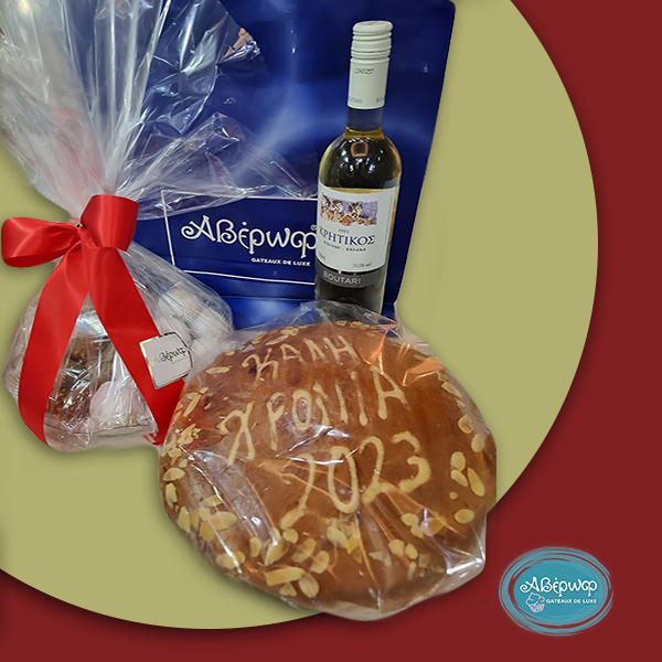 Χριστουγεννιάτικο Πακέτο Δώρου Αβέρωφ – Βασιλόπιτα 1kg, Κρασί & Mix Μελομακάρονα – Κουραμπιέδακια